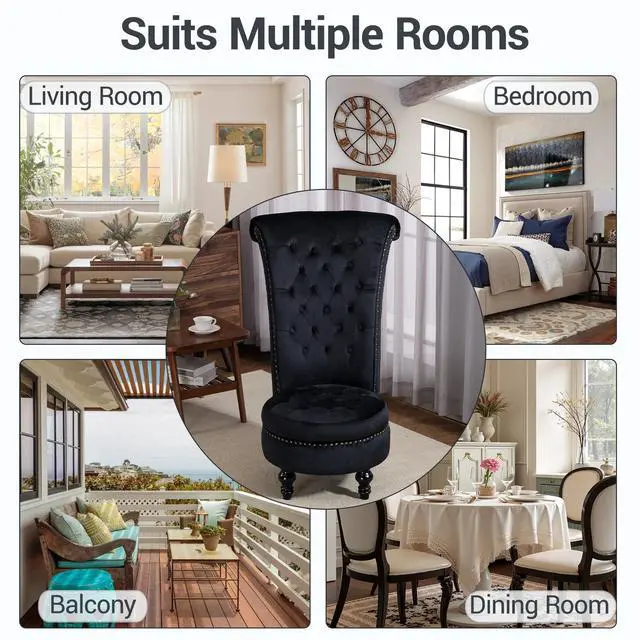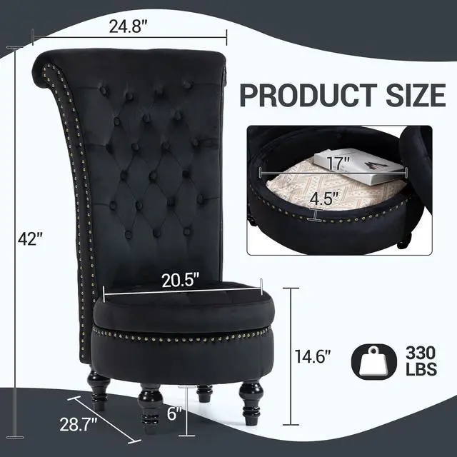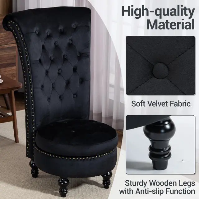 Upgrade your home with the High Back Throne Chaira standout piece that blends retro charm and practicality. Upholstered in lush velvet, this armless accent chair combines classic button-tufted design and double nailhead trim, capturing the elegance of gothic victorian furniture. Its tall wingback silhouette turns it into an eye-catching throne, perfect for sprucing up living rooms, bedrooms, vanity nooks, or even fireplace seating.
