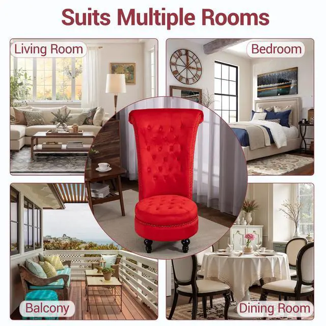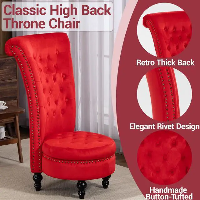 Upgrade your home with the High Back Throne Chaira standout piece that blends retro charm and practicality. Upholstered in lush velvet, this armless accent chair combines classic button-tufted design and double nailhead trim, capturing the elegance of gothic victorian furniture. Its tall wingback silhouette turns it into an eye-catching throne, perfect for sprucing up living rooms, bedrooms, vanity nooks, or even fireplace seating.