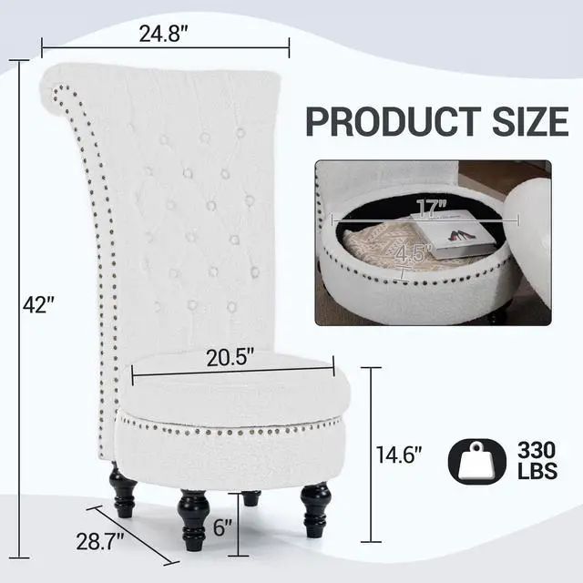 Upgrade your home with the High Back Throne Chaira standout piece that blends retro charm and practicality. Upholstered in comfortable teddy fabric, this armless accent chair combines classic button-tufted design and double nailhead trim, capturing the elegance of gothic victorian furniture. Its tall wingback silhouette turns it into an eye-catching throne, perfect for sprucing up living rooms, bedrooms, vanity nooks, or even fireplace seating.