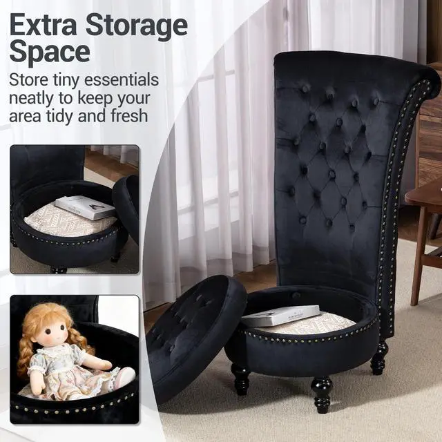 A handy hidden storage compartment under the seat (approx. 16.9 x 16.9 x 4.3 inches) keeps blankets, books, or electronics tidy, adding functionality like a vanity chair with storage.
