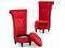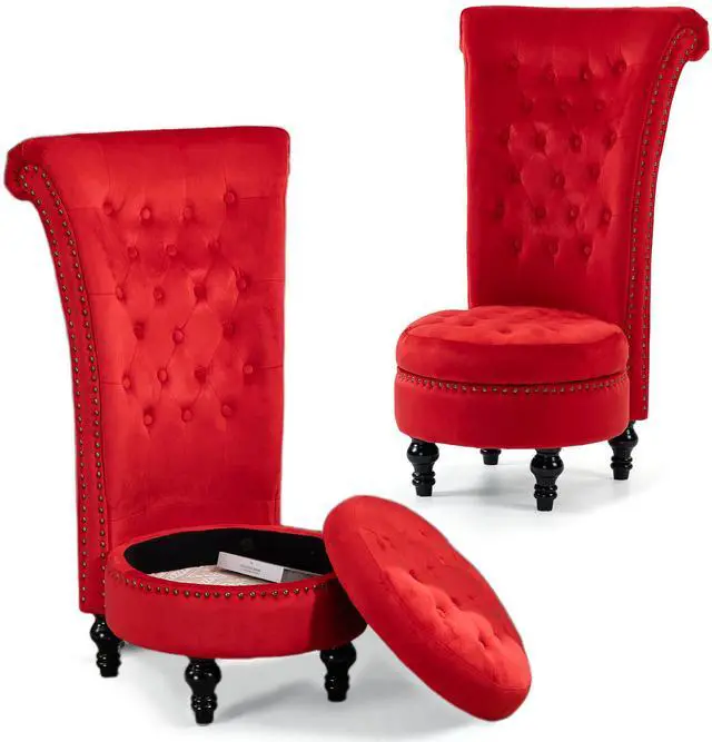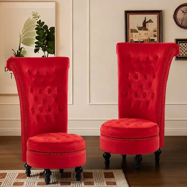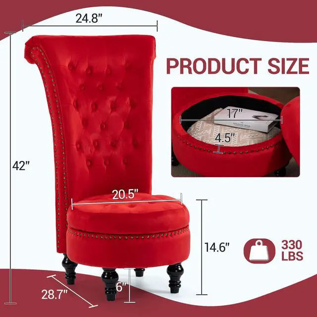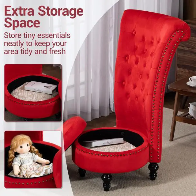 VANBOW High Back Throne Royal Chair Set of 2, Velvet Armless Accent with Storage, Nailhead Trim, Solid Rubberwood Legs for Living Room Bedroom, Red
