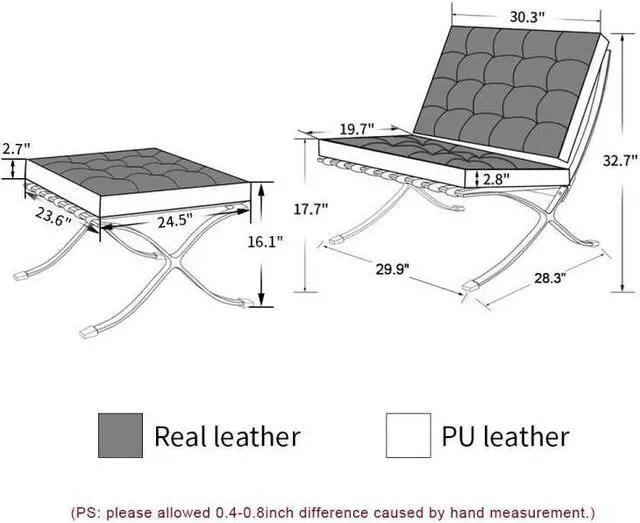 Material: Contact surface leather, non-contact surface high-quality PU, Stainless Steel, Foam