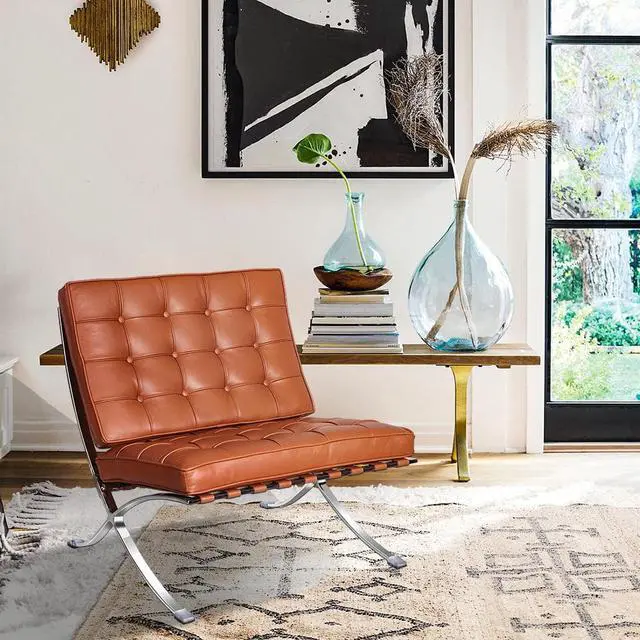 Upholstered in premium Italian top grain leather for a luxurious aesthetic and texture.