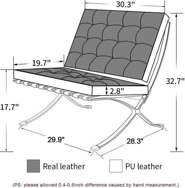Material: Contact surface leather, non-contact surface high-quality PU, Stainless Steel, Foam