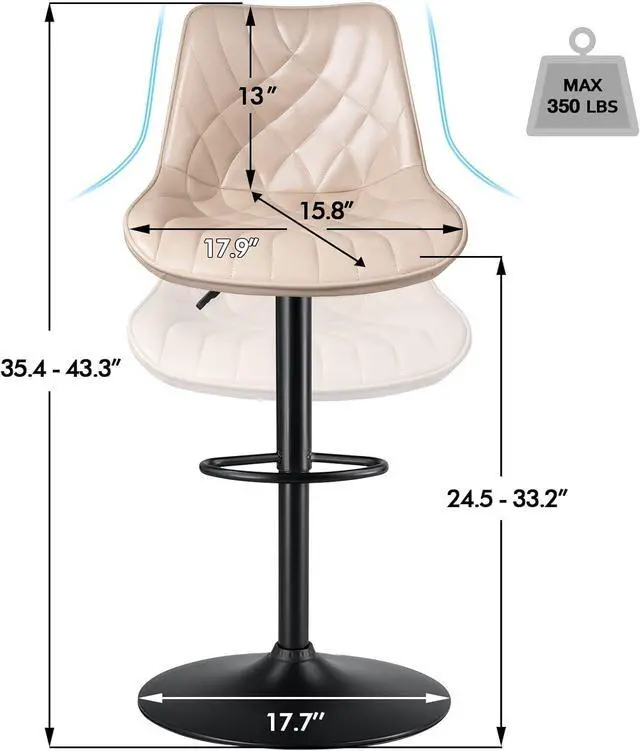 STABLE & STURDYThese kitchen counter stools offer great stability with a wide base (base diameter 17.7 ''), which is also attached with a rubber ring to prevent the floor from being scratched. The gas lifting mechanism is certified by SGS. It can support up to 350 lbs in a static state.