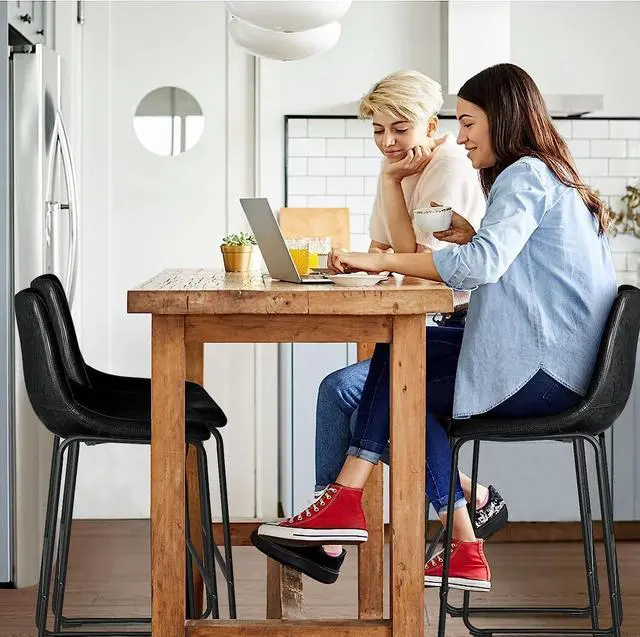Comfortable Seat: This counter stools seat and backrest are made of faux leather which, flexibility, not fade. Furthermore, You can lean against the back of the bar chairs and put your legs on the footrest for a better sitting position