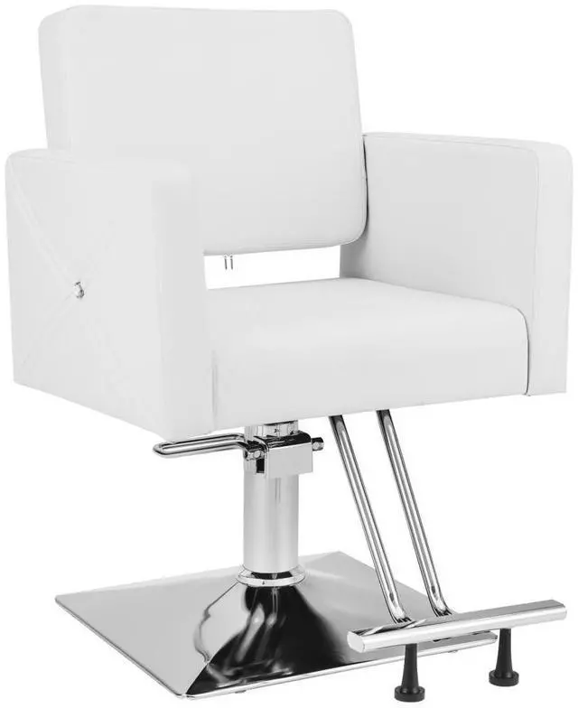 This white salon chair is 5 inches height adjustable and features 360-degree rotation for comfort. Its sturdy base ensures stability, while the removable stand nails on the footrest improve safety. It also includes a stain-resistant back cover to protect the chair surface, making it easy to clean and maintain for long-lasting use.