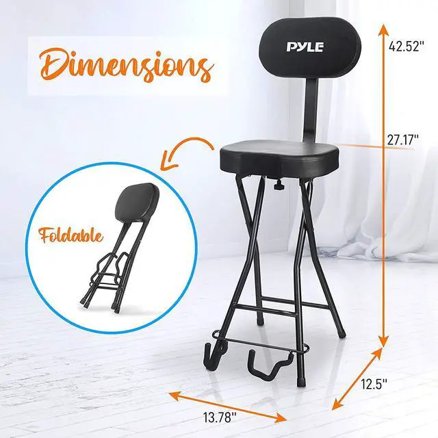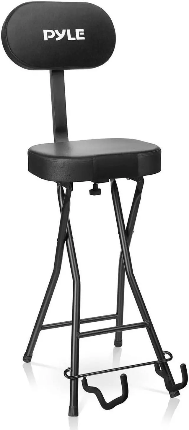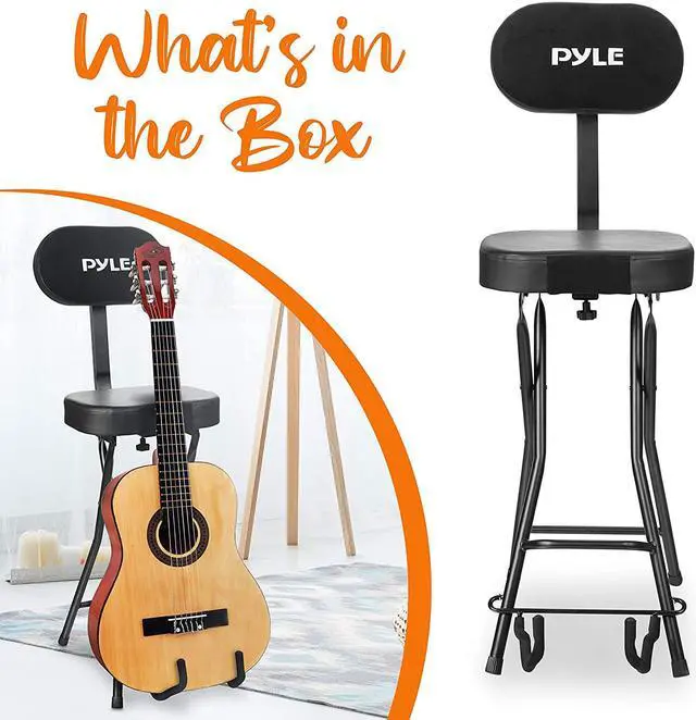 This Pyle Performer Chair Seat Portable Stool with Adjustable Guitar Stand can be used for virtually any venue, from beginner to professional applications.