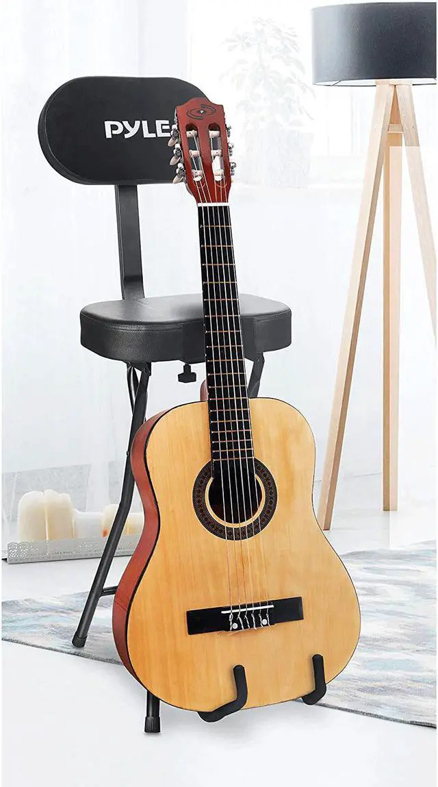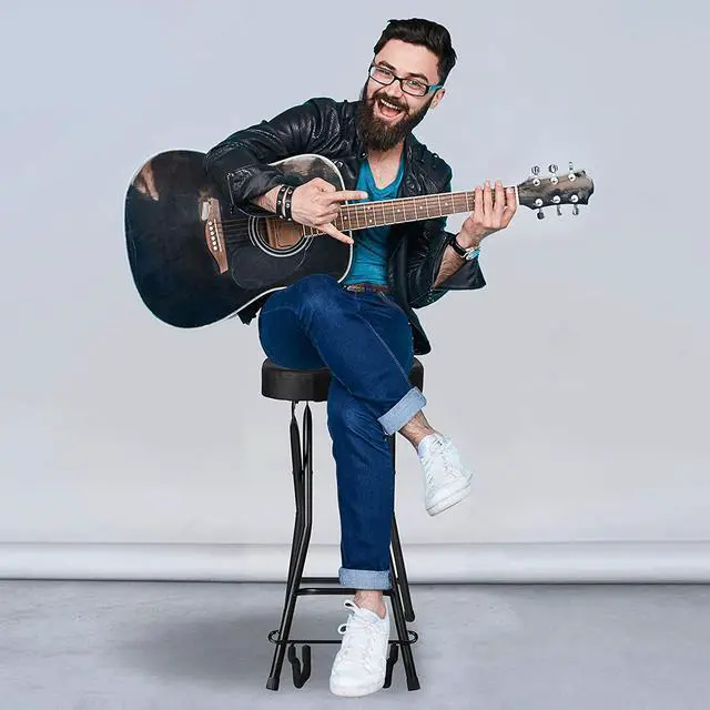 - Padded guitar seat and backrest cushion for comfort with built-in guitar stand