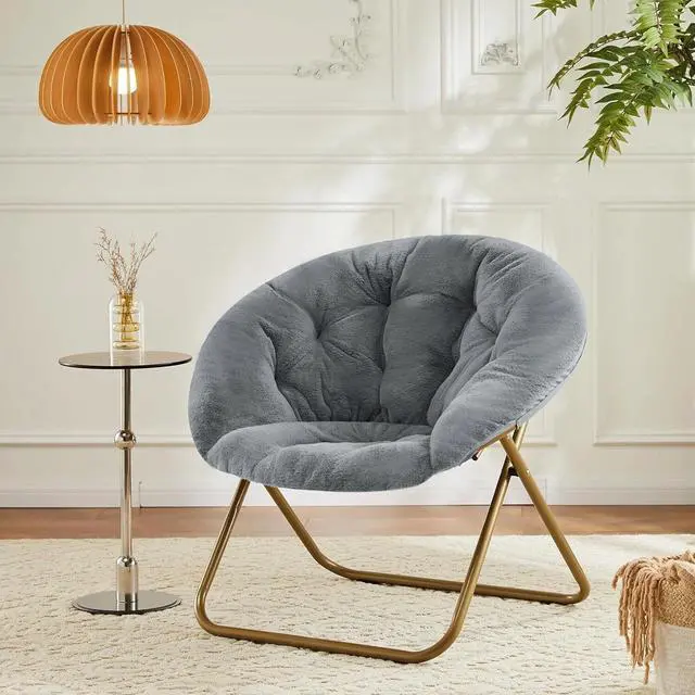 • Foldable Comfy Saucer Chair Modern Faux Fur Cozy Moon Lounge Chair w/Metal Frame