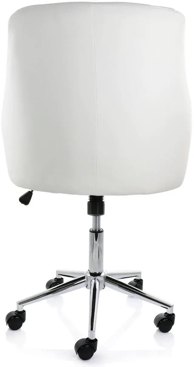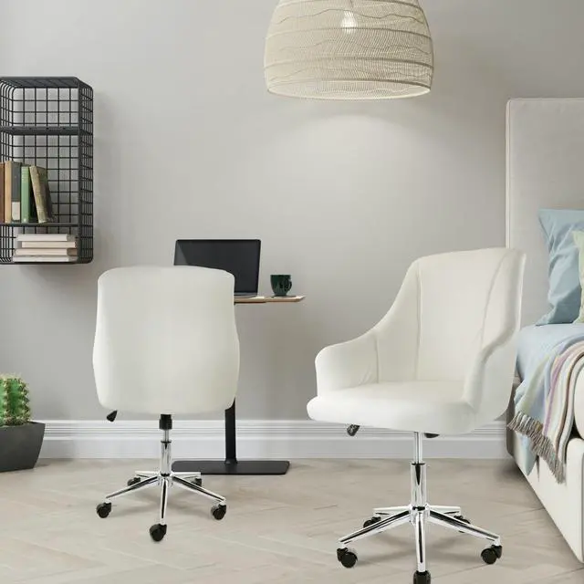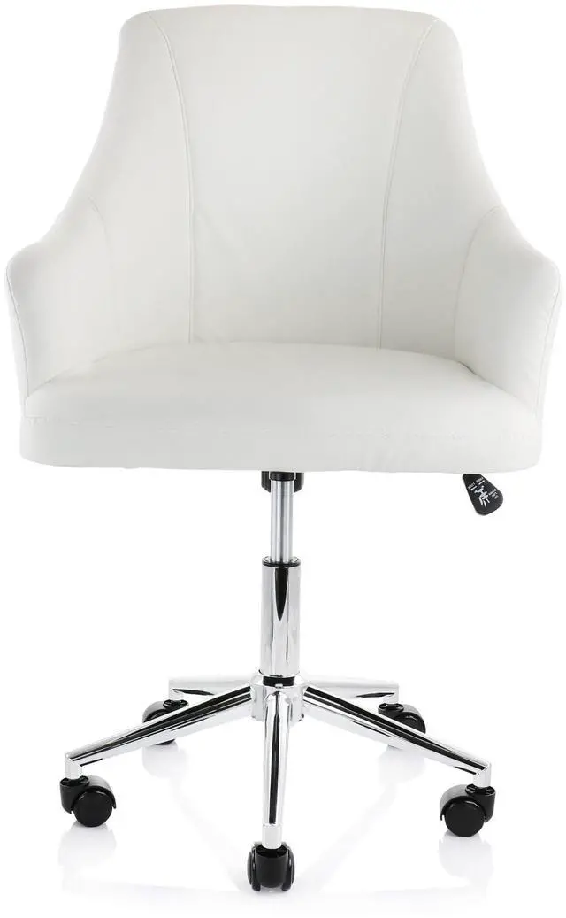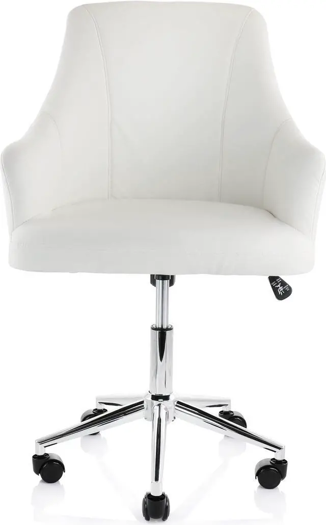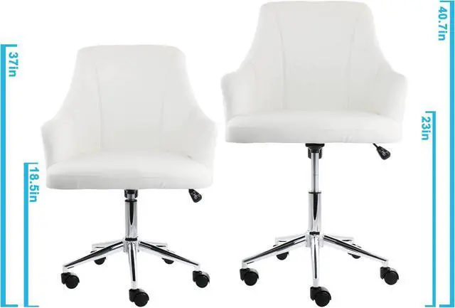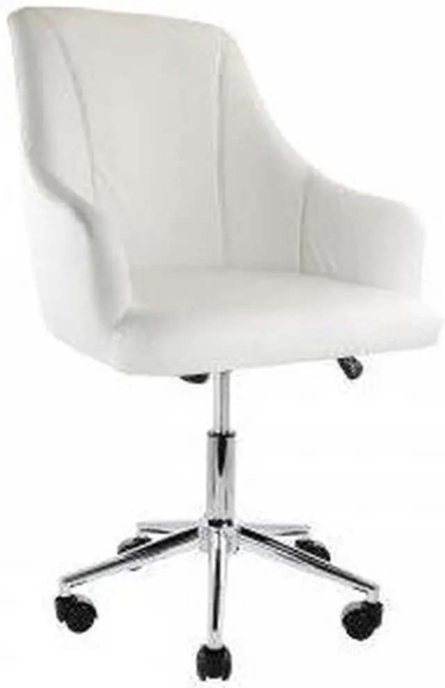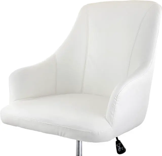 Add a stylish touch to your home with this faux leather rolling office chair by Elama. The stitched faux leather seat is designed with integrated arm rests for comfort and convenience. Swivel base allows you to move freely without hassle and the adjustment lever on the left side lets you pick a custom height so you can move from lounging to working at a desk with ease. Plastic rolling feet move with ease, allowing you to slide along your desk to reach all your essentials easily. Constructed with durable metal and quality faux leather for long lasting use.
