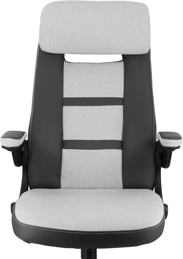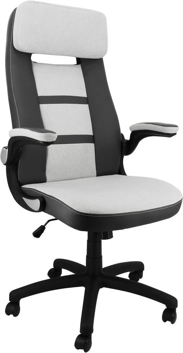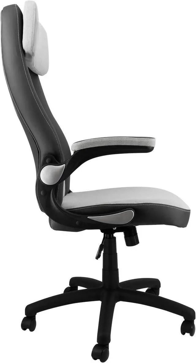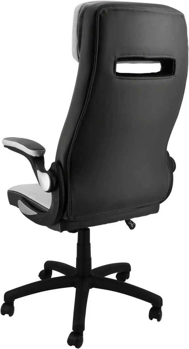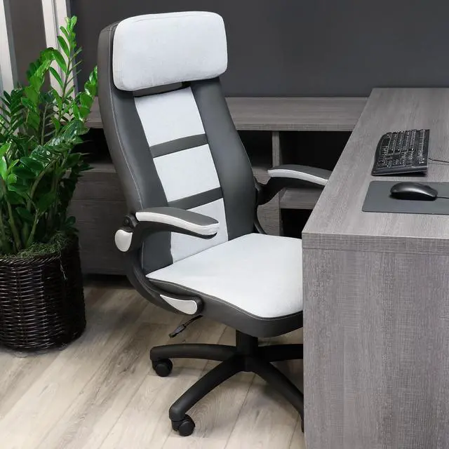 Work comfortably at home or at the office with the Elama High Back Adjustable Faux Leather and Fabric Office Chair in Dark Gray and Light Gray. This chair is designed with both luxury and efficiency in mind. Constructed with an ergonomic and comfortable sturdy faux leather seat with padded arm rests, 360 Degree swivel, and extra padding at the top for added neck and head support. Features a five wheel bottom design, adjustable arm rests, and adjustable height for customization. Move freely around your workspace while getting the support you need with this office chair by Elama!