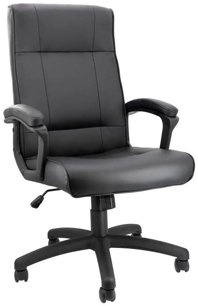 This office chair is designed for versatility and convenience, featuring an adjustable seat height using a smooth gas lift mechanism. The butterfly mechanism allows for easy tilt adjustment, giving you the flexibility to customize your seating position. Built with nylon foot with wheels, it ensures effortless mobility across the office floor, while maintaining a stable base. Whether you're working from home or at the office, the Elama High Back Adjustable Faux Leather Office Chair in Black offers a perfect blend of comfort, durability, and modern style, making it an ideal choice for any professional environment.