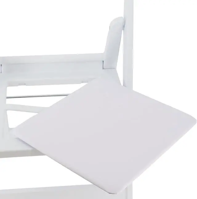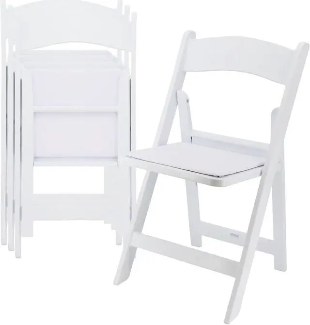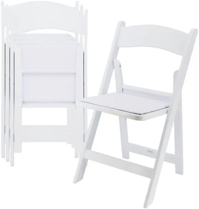 Never worry about having enough seating. The Elama 4 Piece Plastic Folding Chair in White with Removable Seat Pad are easily fold-able and stack taking little storage space. The plastic construction makes these easy to clean up and maintain so you can use them for a number of events from family dinners to weddings. Features a removable seat pad making it easier to clean, repair, or replace when needed.
