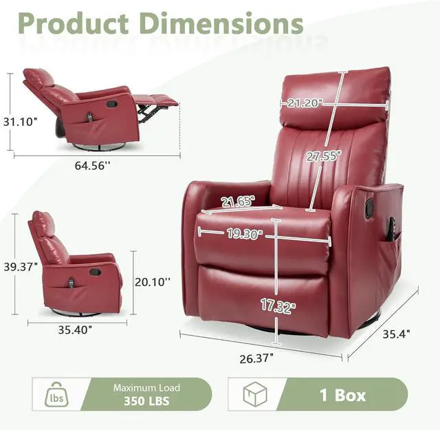 | Special Feature | Heated, Massage, Reclining, Rocker, Swivel |