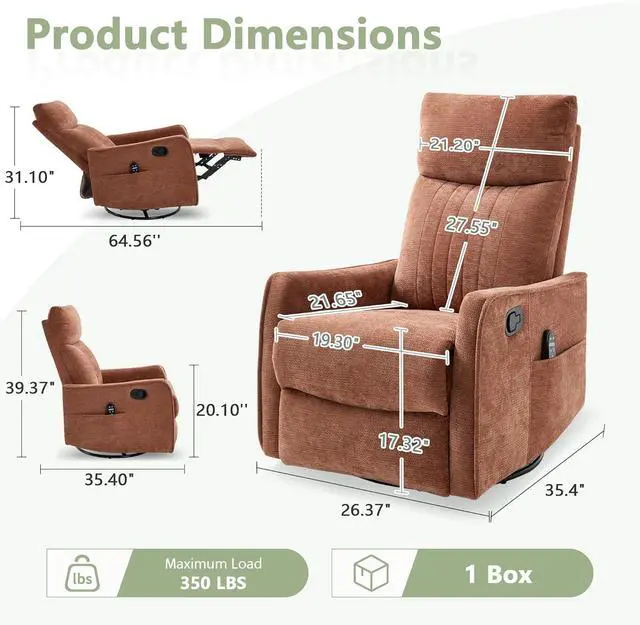 | Special Feature | Heated, Massage, Reclining, Rocker, Swivel |