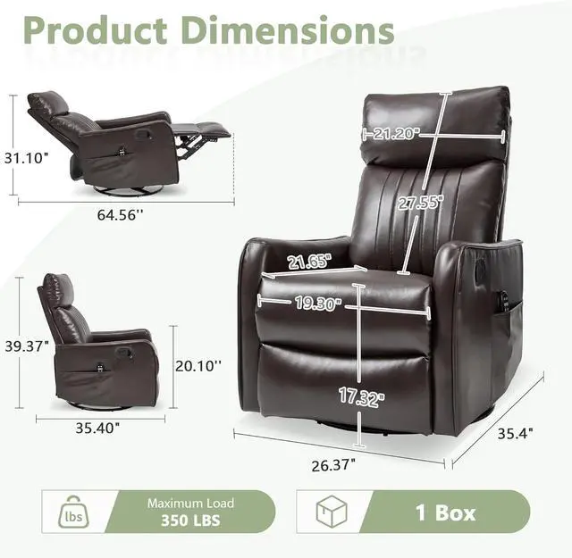 | Special Feature | Heated, Massage, Reclining, Rocker, Swivel |