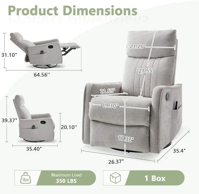 | Special Feature | Heated, Massage, Reclining, Rocker, Swivel |