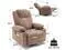 [MASSAGE & HEATING] Our massage chair recliner is equipped with 8 vibrating nodes and 2 lumbar heating points, which is good for relieving waist pressure and improving blood circulation. With five massage modes and two vibration strengths, you can enjoy a full-body massage to relax your upper back, lower back, thighs, and legs. The 15/30/60-minute timer function is convenient for you to set the massage duration
