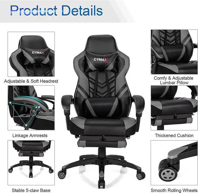 Adjustable Gaming ChairThe chair comes with multiple adjustable functions to perfectly meet all your needs in daily use. The seat height can be adjusted from 17" to 20" to fit well with desks of different heights. Moreover, adjustable backrest (90°-155°) and linkage armrests enable you to find ideal positions for working, gaming or napping.