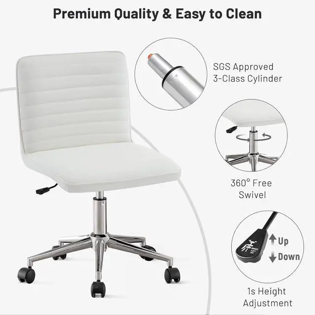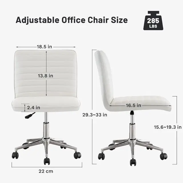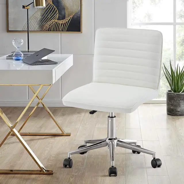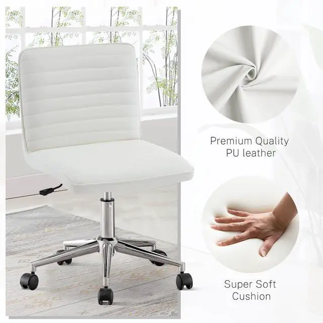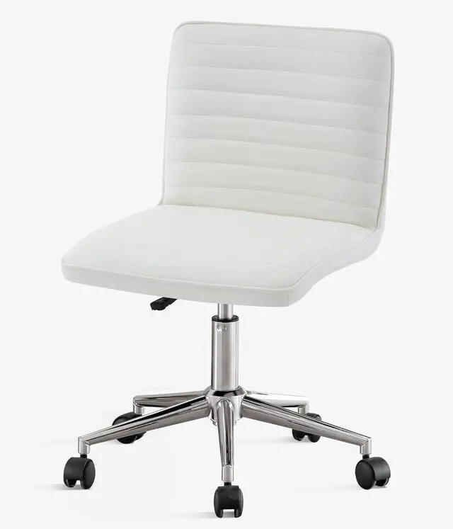 Furniliving PU Leather Home Office Chair, Armless Computer Desk Chair with 360° Swivel Wheels Adjustable Height Comfy Chrome Legs for Living Room Bedroom, Vanity, Office, Ivory White