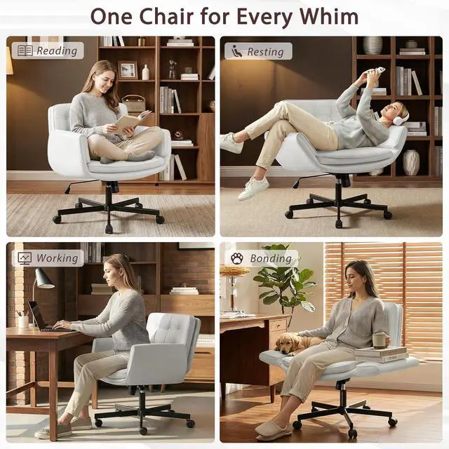 Multi-Functional Adjustability: This office chair criss cross also offers 90-105° rocking and 360-degree swivel functionality. A tension-adjusting knob enables effortless forward/backward rocking, perfect for reading or relaxation. With 3.5 inches of height adjustment, it easily adapts to desks of varying heights, meeting diverse usage needs.