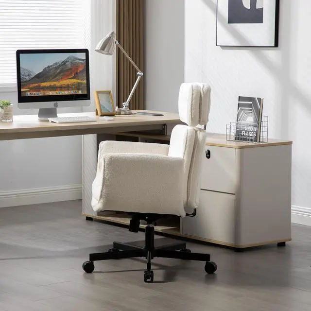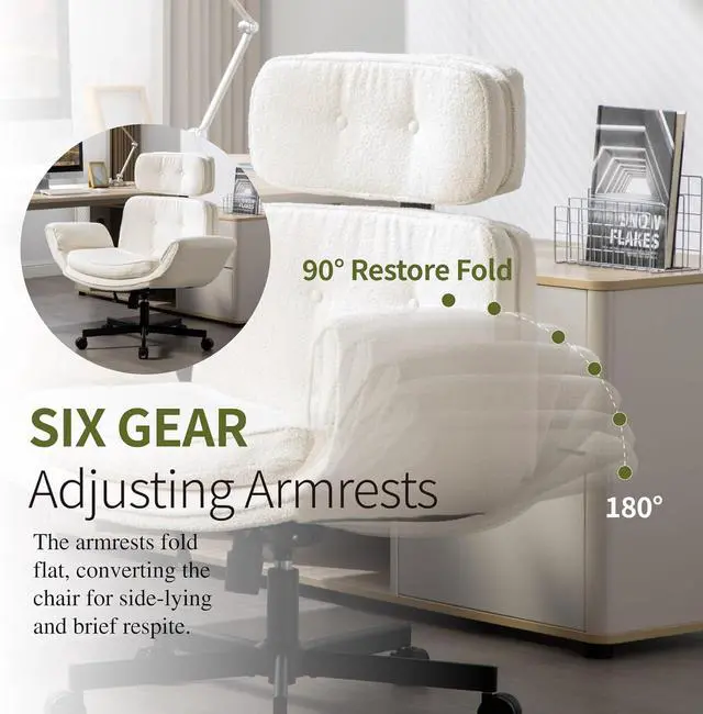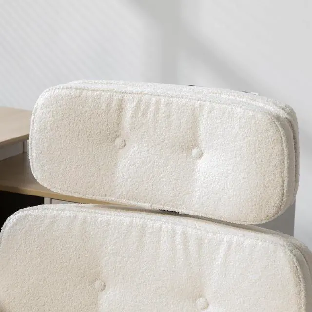 Furniliving Upgraded Criss Cross Chair with 6-Position Adjustable Arms, Luxury Boucle High Back Swivel Vanity Chair with Wheels, Comfortable Wide Computer Desk Chair, Ivory White