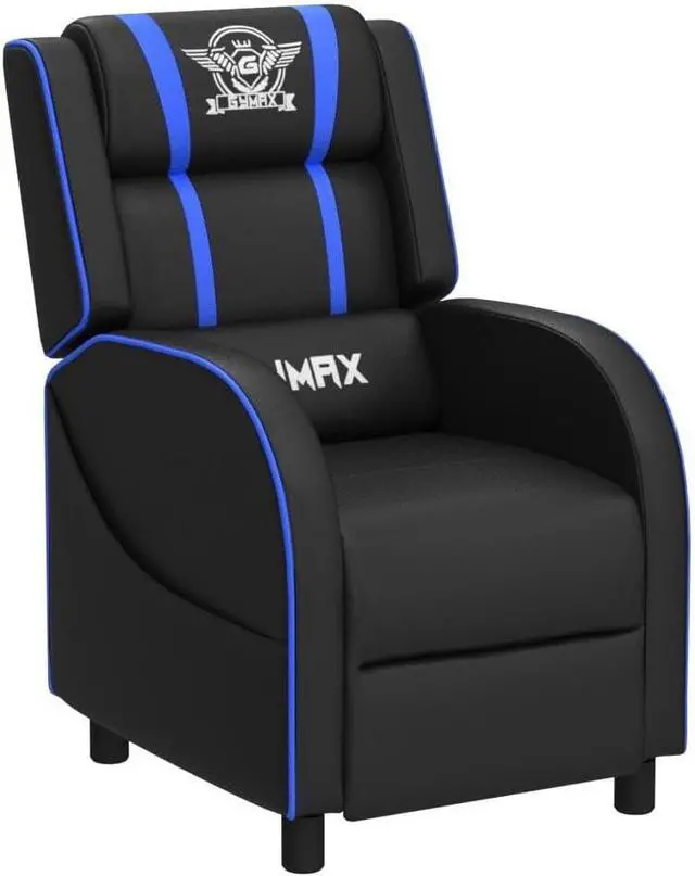 POWERSTONE Gaming Recliner Chair, Reclining Gaming Chairs for Adults Ergonomic Leather Sofa with Footrest Lumbar Support Headrest and Side Pouch for Living Room Home Theater, Blue
