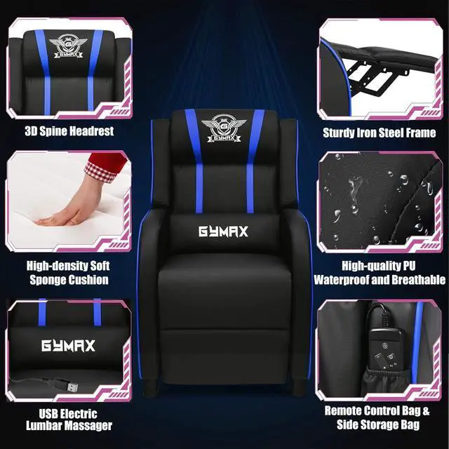 Eight Massage Modes - The gaming recliner sofa with 2 lumbar massage spots, can constantly relax your body during the exciting gaming time to promoting a better gaming experience. In addition, massage chair include 8 massage modes, you can adjust massage strength, positions and time to meet your different needs