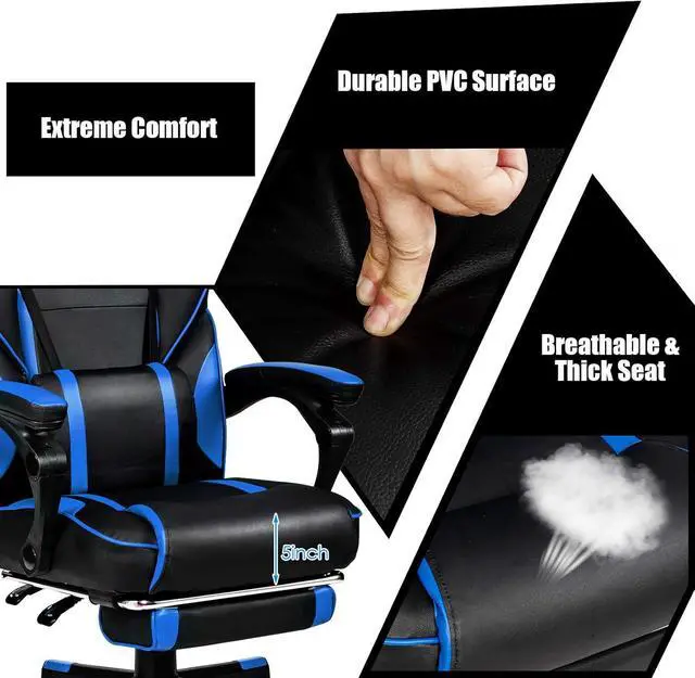 POWERSTONE Gaming Chair Adjustable High Back PU Computer Chair with Footrest Massage Lumbar Support Headrest Thick Armrest Rolling Swivel Desk Chair, Navy Blue