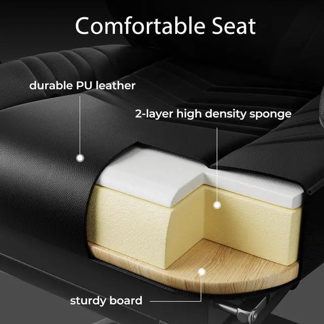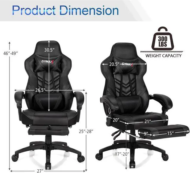 Stable & Robust ConstructionThe whole game chair adopts a solid steel frame as the main structure, and is equipped with a heavy 5-claw metal base support to ensure the stability of the racing chair, with a load of 300 pounds. The upgraded gas rod and mechanical devices have greatly extended the life expectancy of the chair.