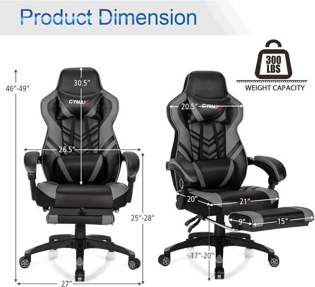 Stable & Robust ConstructionThe whole game chair adopts a solid steel frame as the main structure, and is equipped with a heavy 5-claw metal base support to ensure the stability of the racing chair, with a load of 300 pounds. The upgraded gas rod and mechanical devices have greatly extended the life expectancy of the chair.