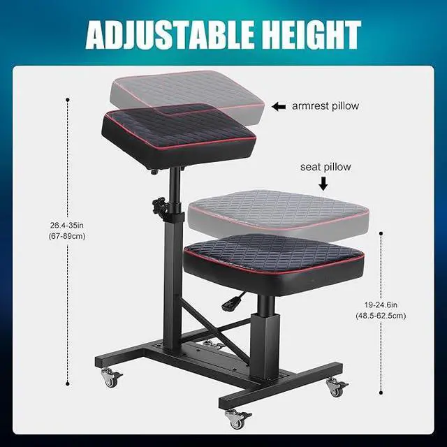Adjustable Height AngleAccording to the needs of use, the seat cushion is equipped with a convenient air pump adjustment device, and the armrest is equipped with a flexible mechanical adjustment device. The height of the stool and armrest can be freely adjusted according to personal height and work needs. The seat can be adjusted from 19" to 24.6", and the backrest can be adjusted from 26.4" to 35". In addition, the armrests can be adjusted at multiple angles of 180° to meet the needs of different scenarios.