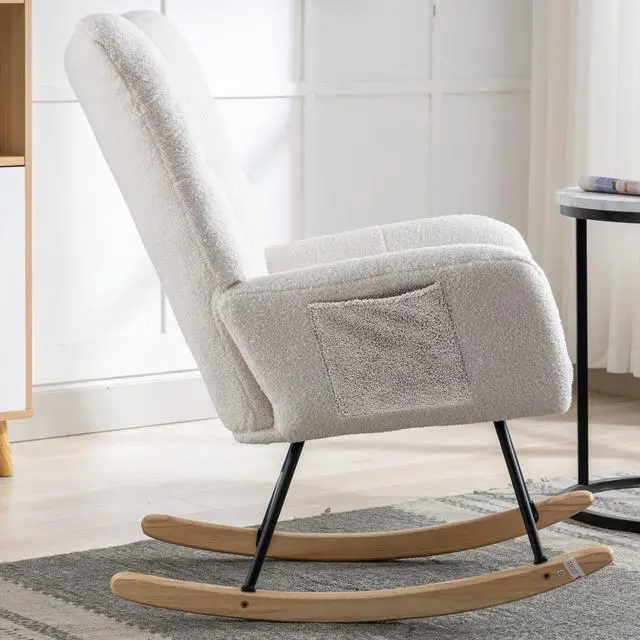 • [Super Comfort]Covered with soft teddy fabric and filled with a high-density soft sponge, our modern rocking chair can bring you a gentle touch and ultimate seating comfort. The well-cushioned generous seat depth and width provide ample seating space and give you a comfortable experience