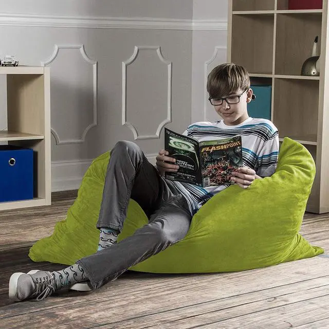 The 3.5 ft Pillow Saxx is perfect for kids who need a platform for reading, gaming, or just hanging out. Filled with finely shredded polyurethane furniture grade polyurethane foam and covered with soft yet durable Microsuede, our 3.5 ft Pillow Saxx is a bean bag chair, floor pillow, and crash pad all in one. Our covers are removable and machine-washable, and the protective inner-liners childproof zipper keeps the filling out of reach during cleaning. To clean cover, machine wash with cold water and tumble dry with low heat.