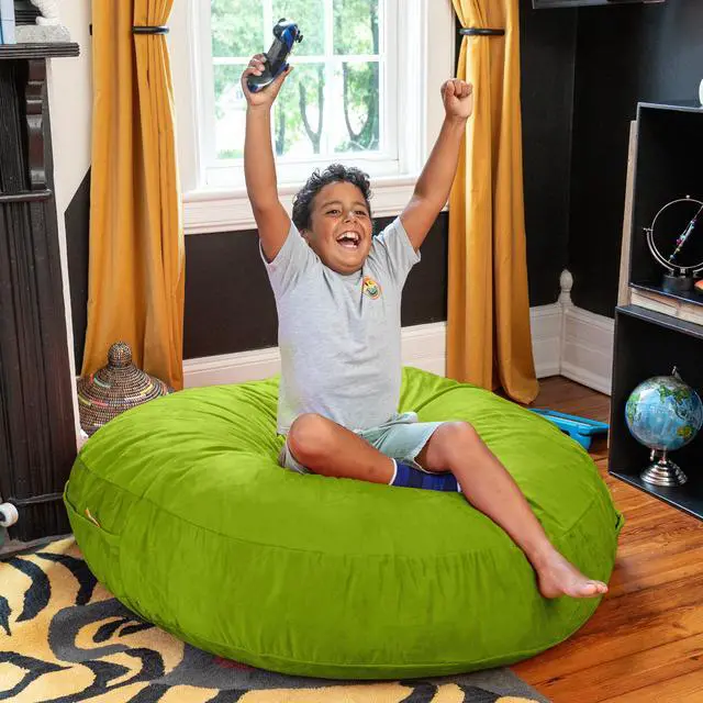 Kids of all sizes love the multi-functional 4 ft Cocoon Bean Bag. Filled with finely shredded polyurethane foam and covered with soft yet durable Microsuede, this four-foot bean bag can be a chair or crash pad depending on the position. Available in a variety of colors, our Microsuede covers are both removable and machine-washable. Each bean bag includes a protective inner-liner with childproof zipper that keeps the filling out of reach when cleaning the cover. To clean the cover, wash with cold water and tumble dry on low heat.