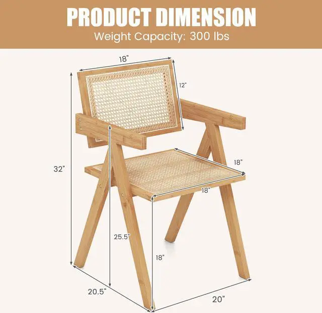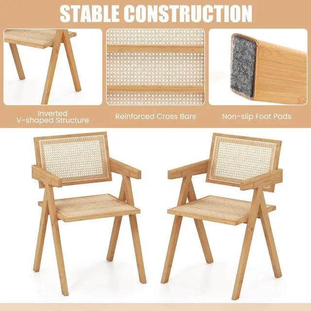 High Quality Materials: Made of premium imitation rattan, the rattan armchairs are cool and breathable to sit on. What's more, the natural bamboo frame is durable and sturdy for long-lasting use.