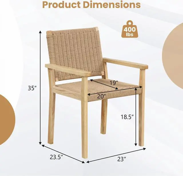 Paper Rope Woven Seat: The seat and back are made of tightly woven paper rope, which is double-sided for higher stability. Furthermore, the well-woven appearance is elegant in look, making the chairs always eye-catching wherever they are.