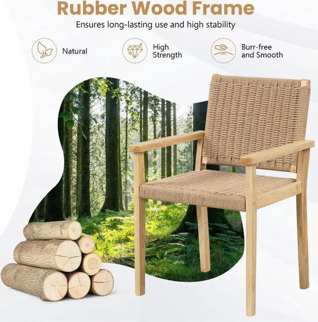 Rubber Wood Frame: The main frame of each chair is crafted from selected and high-grade rubber wood, ensuring long-lasting use and high stability. The wood frame is not only natural, but also high-strength, burr-free and smooth.