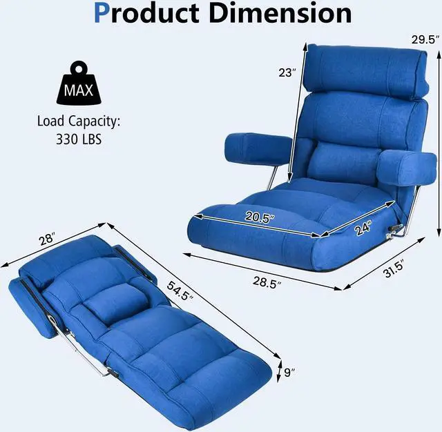 Premiere Material: Made from high-quality metal pipe, the frame of this foldable floor sofa chair features high stability and durability with load capacity of 330 lbs. In addition, the multi-layered lining filled with flame-retardant fabric, thickened sponge and polyethylene foam ensures comfortable sitting experience.