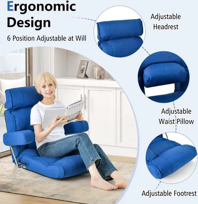 Flexible Position Adjustment: Other than the adjustable backrest and extendable armrests, our folding floor sofa chair provides customizable support with 6-position adjustable headrest, waist pillow and extended cushion, allowing you to create a personalized and comfortable seating experience.