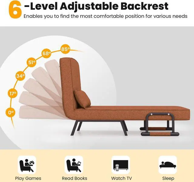 -6-level adjustable backrest (0°, 17°, 34°, 51°, 68°, 85°) meets your daily needs
