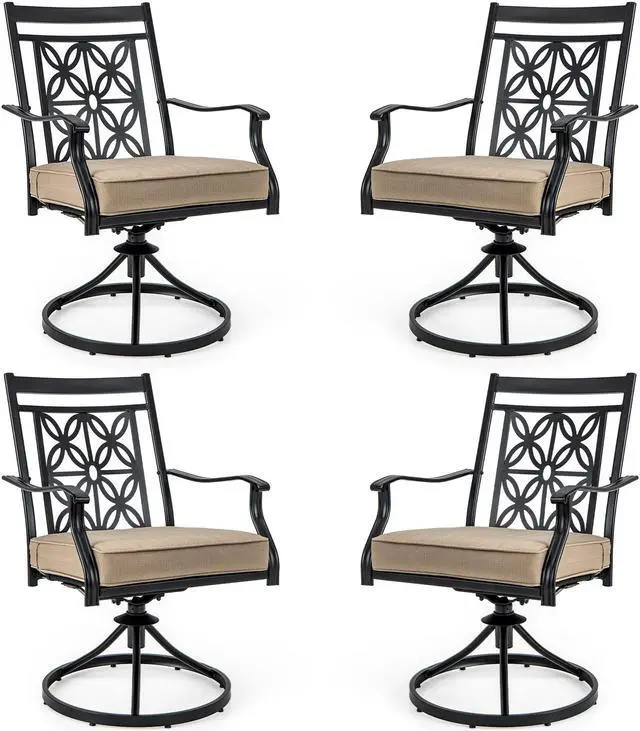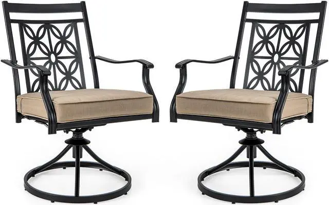SlickBlue 2 Pieces Patio Swivel Chairs with Blossom Pattern Backrest and Cushions
