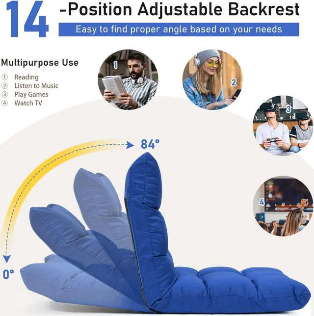 Adjustable Floor Sofa Chair: It adjusts to 14 different positions, allowing you to relax upright or even lay all the way back for a quick snooze.