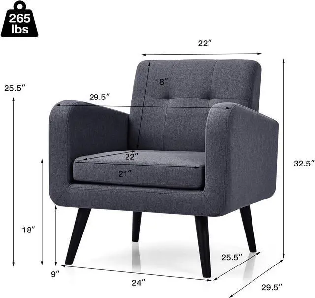 Sturdy Structure with Rubber Wood Legs: Made of a premium wooden frame, this accent chair combines excellent sturdiness and lasting durability. And 4 rubberwood legs will provide great support and stability, allowing the armchair to withstand up to 265 lbs without wobbling.