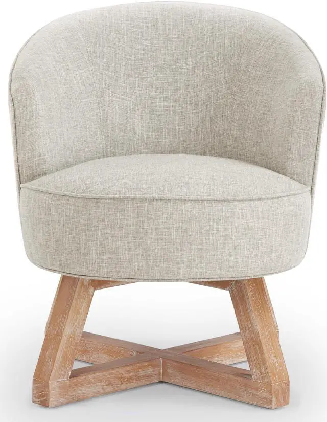 CHAYOU Swivel chair with cross-shaped wooden base,Lounge chair with solid wood legs, 360°freely Swivel chair , Classic linen Fabric for living room, bedroom, office, dresser -Light Gray