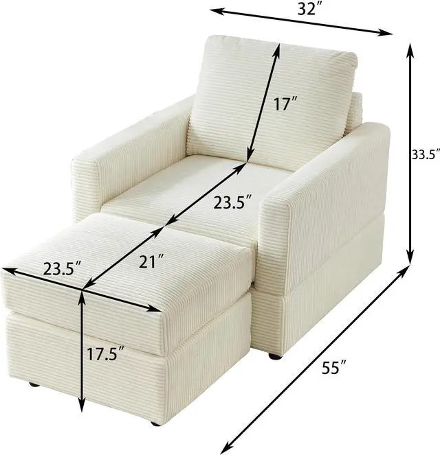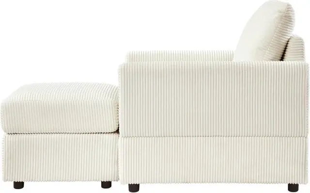 Classic Corduroy Chaise Lounge, Comfy Sofa Chaise Couch Chair, Upholstered Accent Chair with Ottoman for Living Room