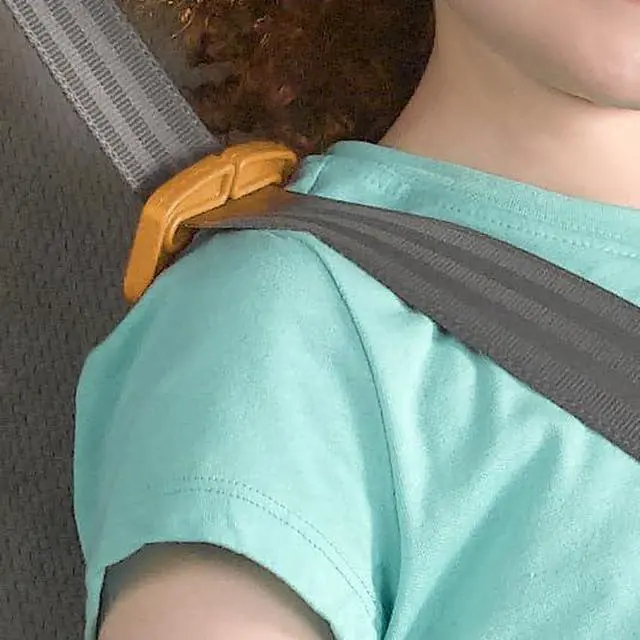GoFit is equipped with integrated lap belt guides and a shoulder belt clip to help position the vehicle seat belt for proper use. A built-in carry handle makes it easy to transfer this portable booster seat from vehicle to vehicle and a smooth underside helps protect vehicle seats from damage.