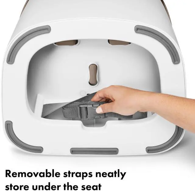 The OXO Tot Nest Booster Seat gives kids as young as nine months a secure seat at the family table. With a soft, removable cushion and high back and sides, the Nest Booster transforms any grown-up chair into a child-friendly seat. Two side-release buckles keep kids securely strapped in (and prevent them from escaping!). The back and bottom chair straps are adjustable for a secure fit on different chair styles and sizes, and the non-slip feet keep the Booster Seat stable while protecting chairs from scratches. The 3-point harness keeps even the wiggliest tot secure and adjusts as your child grows. The built-in handle allows for easy transport, and the straps store neatly in a compartment under the Booster Seat when not in use.
