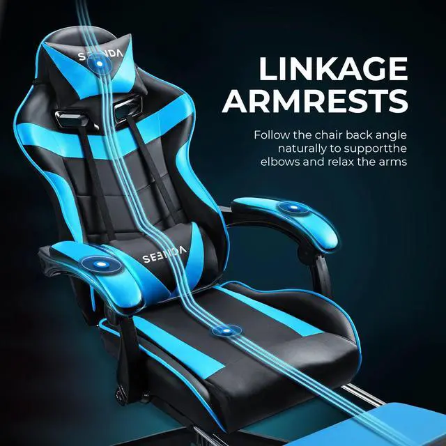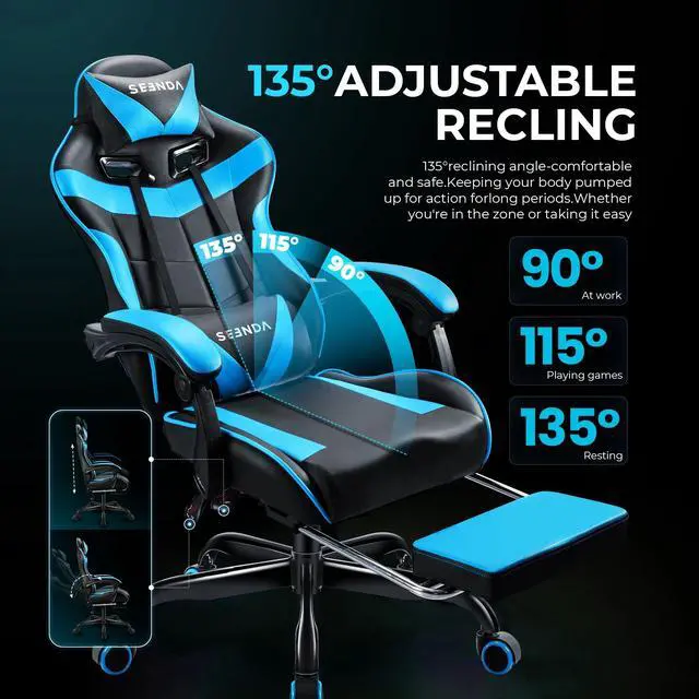 New & Upgraded:Designed for serious gamers, this chair features a removable lumbar cushion, neck pillow, and retractable footrest. Perfect for intense gaming sessions or quick breaks, it provides full-body support to relieve back and neck strain. More than just a chairit's your personal relaxation station.